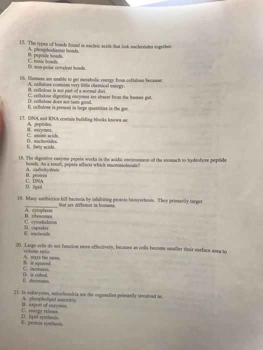 Solved 15 The Types Of Bonds Found In Nucleic Acids That Chegg Com